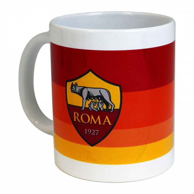TAZZA MUG COLAZIONE IN CERAMICA BIANCA CON LOGO AS ROMA OFFICIAL PRODUCT MULTICOLOR9,5X8CM+MANICO C/SCATOLA.GIEMME ITALY
