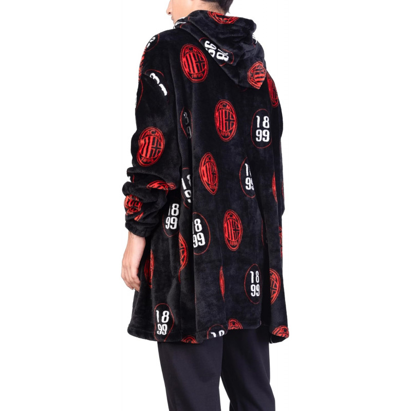 PONCHO IN PILE AC MILAN TG.U MANTELLO CON CAPPUCCIO E MANICHE PER ADULTI 100% POLIESTERE OFFICIAL PRODUCT HERMET ITALY
