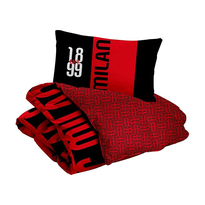 PARURE COPRIPIUMINO 1 PIAZZA AC MILAN 1899 OFFICIAL PRODUCT SACCO COPRIPIUMINO 155X200CM FEDERA 50X80CM 100% COTONE HERM