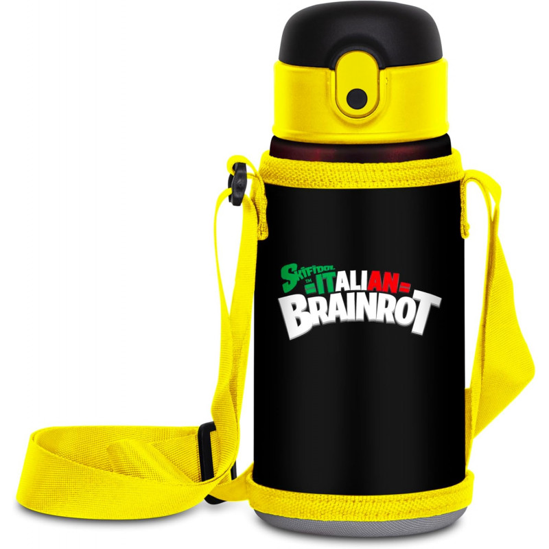 SEVEN JUNIOR BRAINROT BORRACCIA TERMICA CON PORTA BORRACCIA TAPPO AUTOMATICO C/CANNUCCIA 460ML ACCIAIO INOX BPA FREE