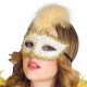 MASCHERINA VENEZIANA ORO DECORATA CON PIUME E APPLICAZIONI PER TRAVESTIMENTI DI CARNEVALE E PARTY VARI COD.12704 GUIRCA