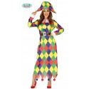 COSTUME CARNEVALE ARLECCHINO DONNA TG.L 42/44 VESTITO ARLECCHINA COMPLETO CAPPELLO E CINTURA 100%POLIEST.NO ACCESSORI