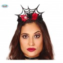 CERCHIETTO CON RAGNO RAGNATELE E FIORI ROSSI E NERI ARTICOLI PER TRAVESTIMENTI STREGA CARNEVALE HALLOWEEN SCENE HORROR
