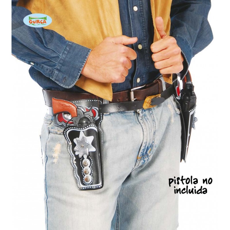 SET CINTURONE CON 2 FONDINE PORTA PISTOLA DECORATI PER FESTE E TRAVESTIMENTI CARNEVALE SCERIFFO COWBOY DEL WEST