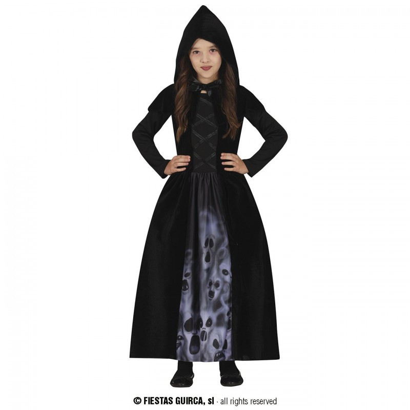 COSTUME STREGA 10/12 ANNI MAGIA NERA FATTUCCHIERA HORROR VESTITO CON CAPUCCIO PER TRAVESTIMENTI DI HALLOWEEN NO ACCESSOR