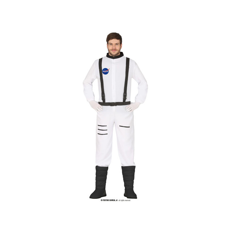 COSTUME ASTRONAUTA AMERICANO NASA TG L 52/54 VESTITO CARNEVALE UOMO DELLO SPAZIO TUTA BIANCA E NERA NO ACCESSORI
