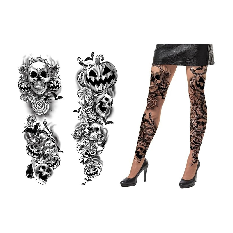 COLLANT NERI CON TATUAGGI HORROR TG UN 112/160CM ADULTI PER TRAVESTIMENTI DI HALLOWEEN E CARNEVALE SPETTACOLI