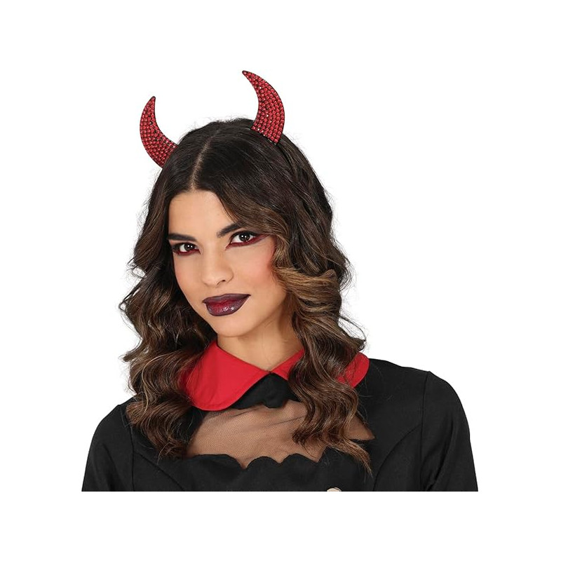 CERCHIETTO METALLO CORNA DIAVOLO CON STRASS ROSSI PER FESTE IN MASCHERA E TRAVESTIMENTI DI HALLOWEEN DIAVOLA HORROR