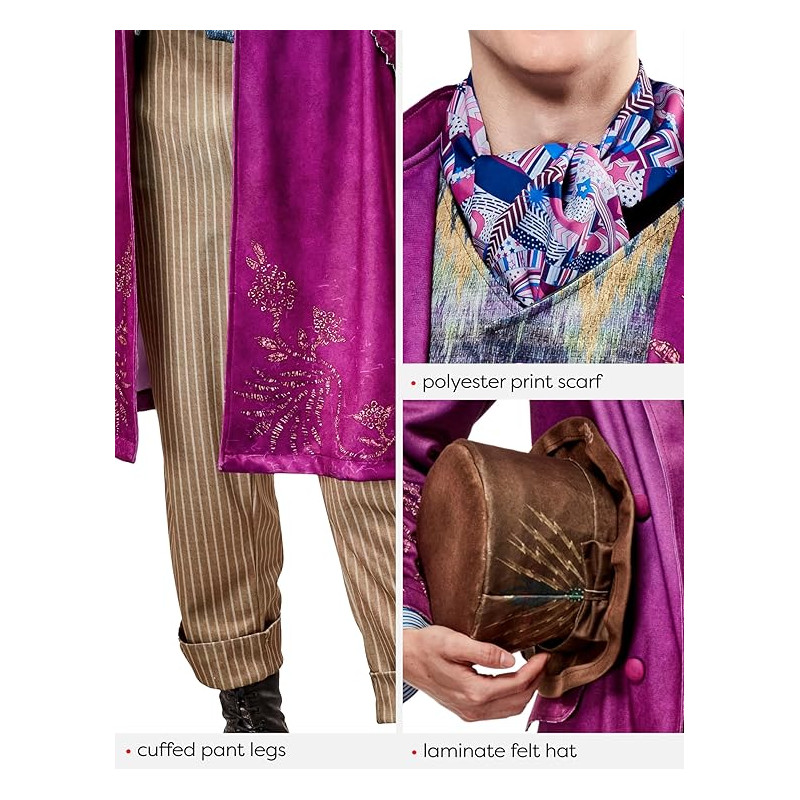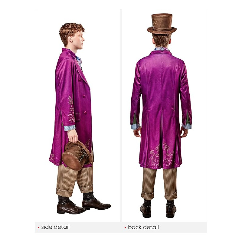 COSTUME CARNEVALE WILLY WONKA L50/52 VESTITO FABRICA DI CIOCCOLATO CAPPOTTO GILET PANTALONI SCIARPA CAPPELLO NO ACCESSO