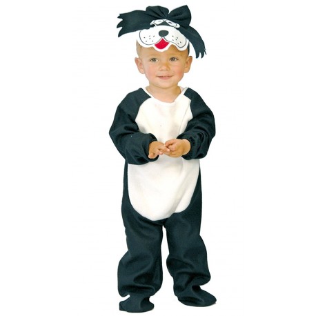 COSTUME CARNEVALE GATTO BABY 12/24 MESI VESTITO COMPLETO TUTA E CAPPELLO BIANCO E NERO 100%POLIESTER COD 78142