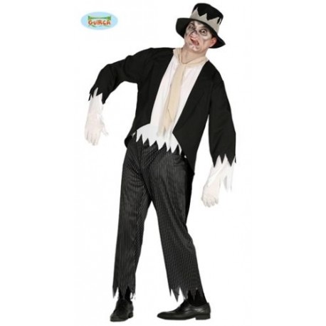 COSTUME MOSTRO ZOMBIE ADULTO MIS.M VESTITO COMPLETO DI CAPPELLO/GIACCA/CAMICIA E FOULARD/PANTALONI HALLOWEEN/CARNEVALE