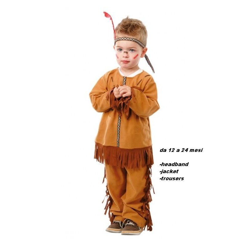 COSTUME VESTITO CARNEVALE BABY INDIANO 12/24 MESI COMPLETO DI PANTALONE/CASACCA/CINTA DA TESTA GUIRCA INDIO BAMBINO