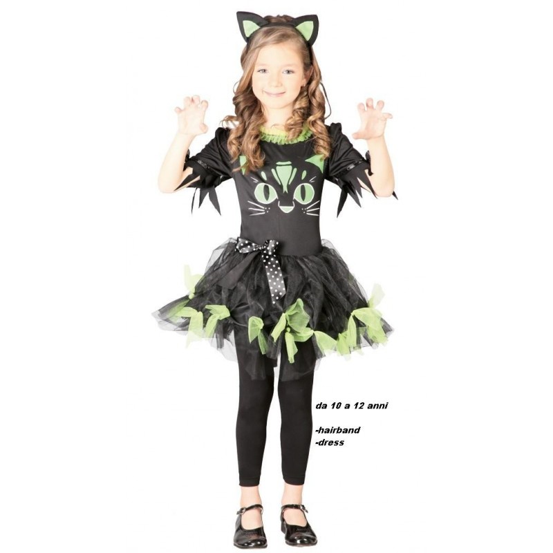 COSTUME CARNEVALE GATTINA NERA BAMBINA 10/12 ANNI BLACK KITTY VESTITO E CERCHIETTO CON ORECCHIE.GUIRCA C.82528