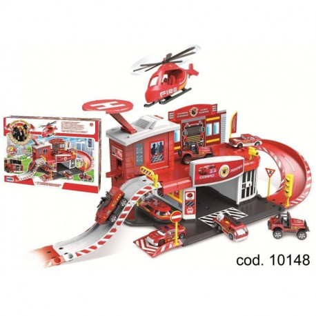 SET LA STAZIONE COMANDO DEL CORPO POMPIERI COMPLETA + 2 AUTO IN METALLO + ELICOTTERO SU PIATTAFORMA.RSTA QUALITY PRO
