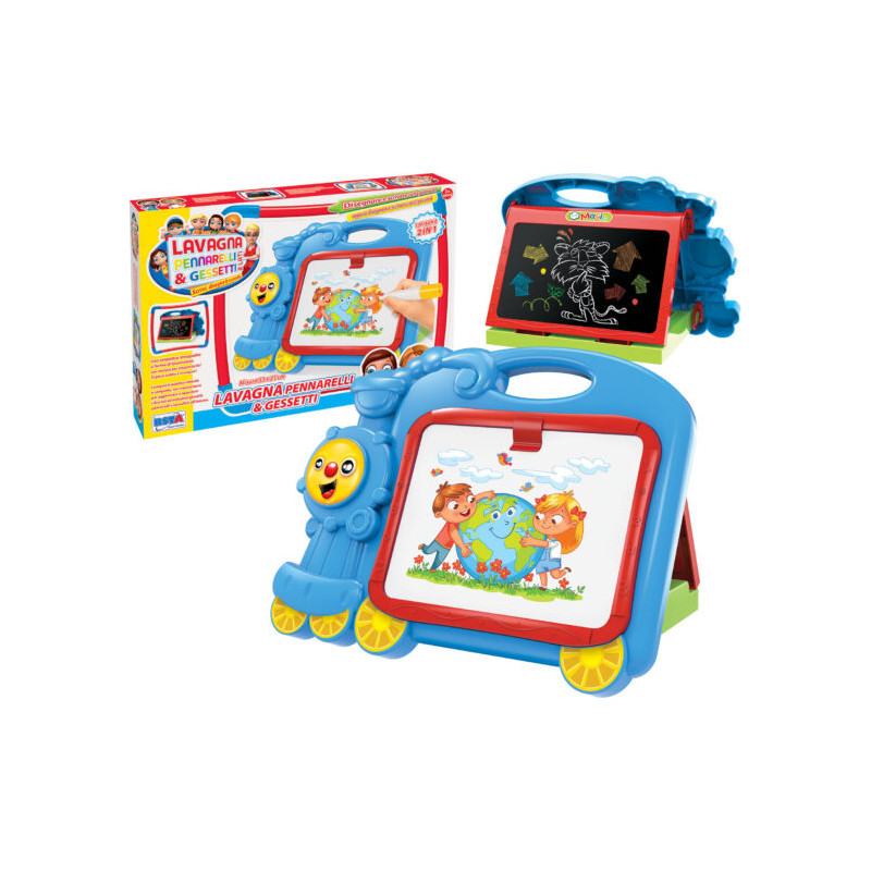 LAVAGNA TRENINO 33X25CM 2 IN BIANCA E NERA+2 PENNARELLI+4 GESSETTI+CANCELLINO COLORA DISEGNA E CANCELLA+LIBRICINO