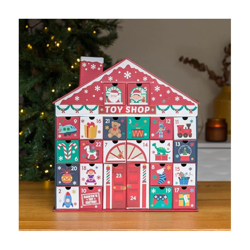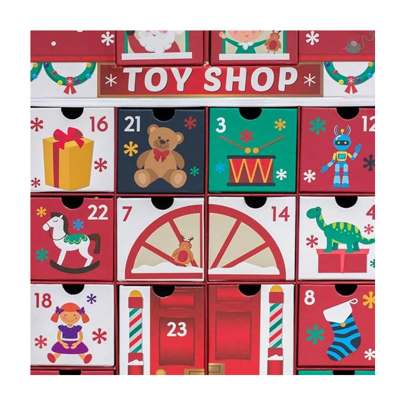 CALENDARIO DELL"AVVENTO CASETTA SANTA"S TOY FACTORY TOYS SHOP 24 CASSETTI DECORAZIONI NATALIZIE ASPETTANDO NATALE
