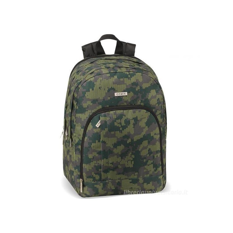 ZAINO SCUOLA ORGANIZZATO COMIX RIGHE VERDI 5 ZIP45X33CM BASE12+6CM PRODOTTO UFFICIALE DA PANINI SCUOLA ITALY