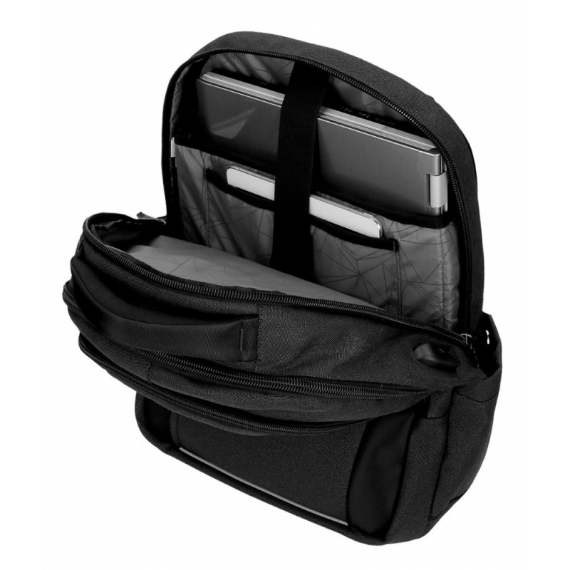 ZAINO ORGANIZZATO MOVOM TRIMMED NERO 33X45X18CM DA LAVORO VIAGGIO E SCUOLA TASCA PORTA PC E FASCIA AGGANCIO PER TROLLEY