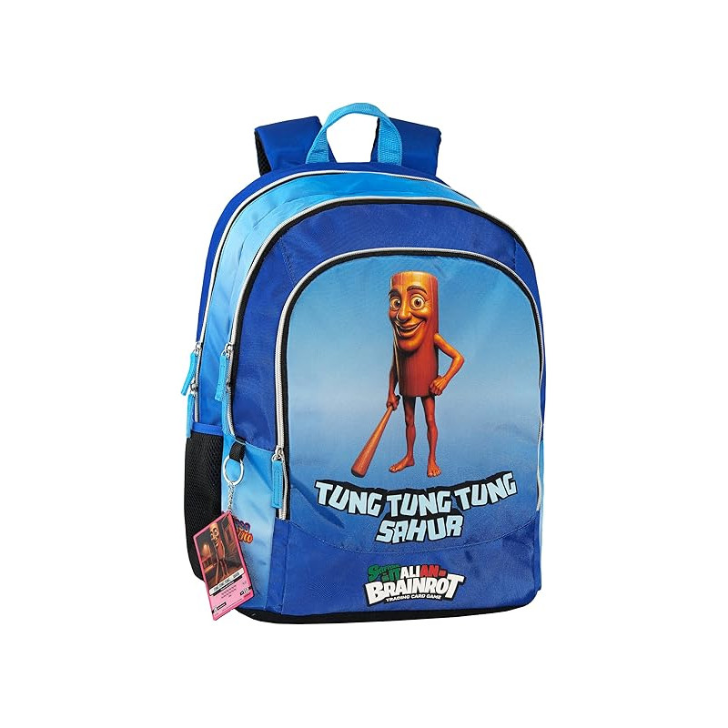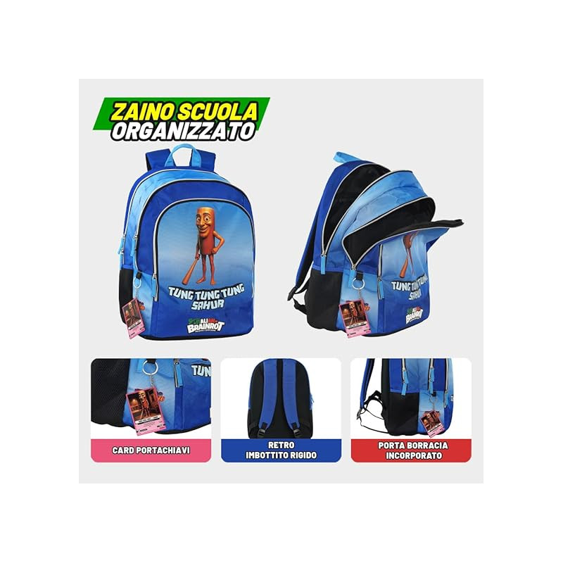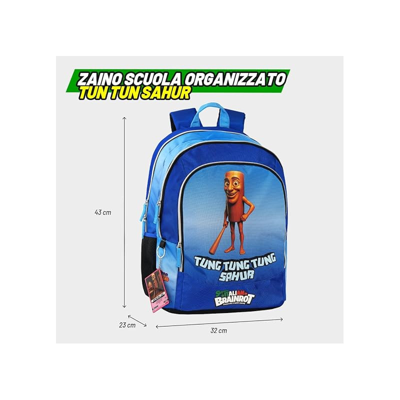 ZAINO ORGANIZZATO 3ZIP SKIFIDOL ITALIAN BRAINROT TUNG TUNG TUNG SAHUR SCUOLA TEMPO LIBERO 44X33X22CM PANINI SCUOLA ITALY
