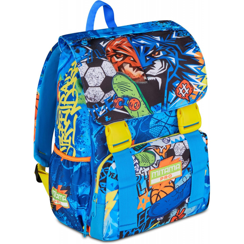 MITAMA PRO ZAINO SCUOLA ESTENSIBILE 4 ZIP TRIPLO SCOMPARTO TIGERPLAY28X38X33CM 28LT 2 TASCHE LATERALI MITAMA SEVEN ITALY