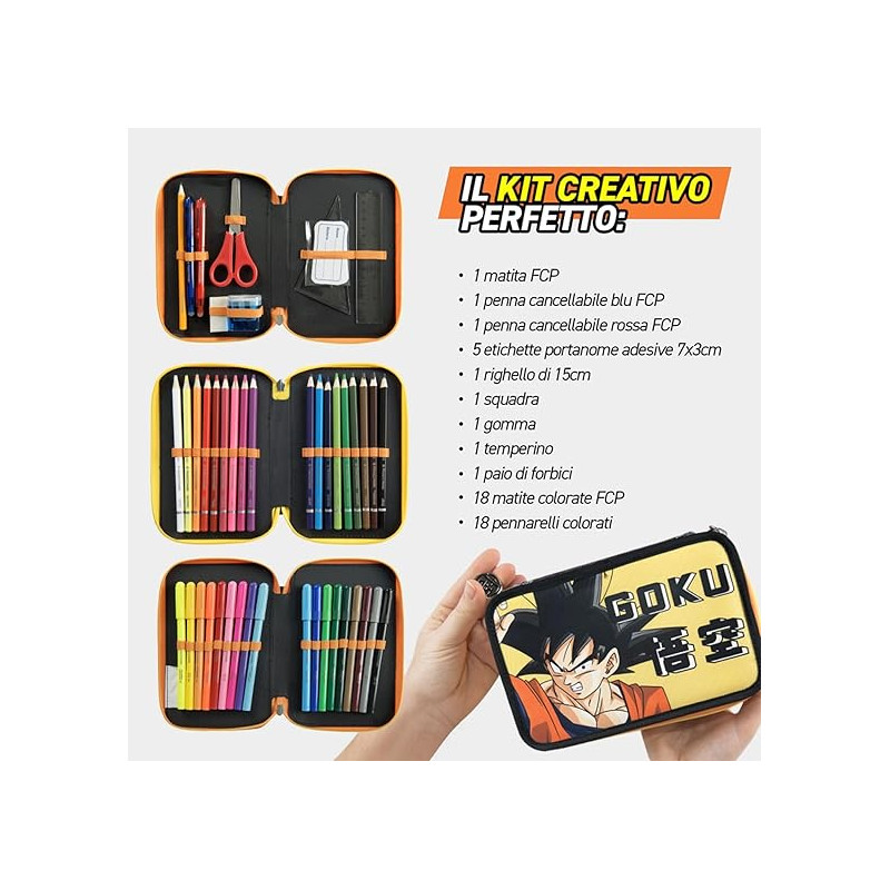 ASTUCCIO 3 ZIP A LIBRO DRAGON BALL SUPER CONTIENE 45PZ PASTELLI PENNARELLI PENNE CANCEL E ACCESSORI SCUOLA PANINI ITALY